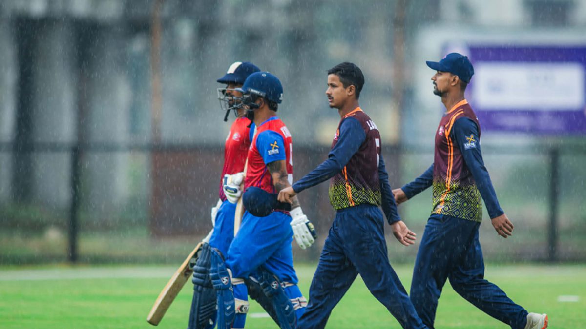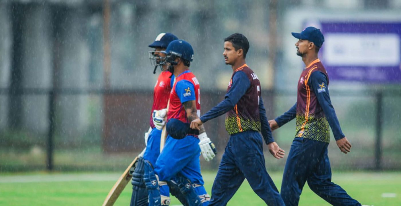 लुम्बिनी प्रदेश ने टॉस जीतकर कर्णाली को बल्लेबाजी के लिए आमंत्रित किया था। बारिश शुरू होने से पहले कर्णाली ने ७ ओवर में २० रन बनाये थे और खेल रोका गया। कर्णाली के ओपनर रविन्द्र शाहि ९ रन और सुनील धमला ७ रन बनाकर क्रीज पर थे।