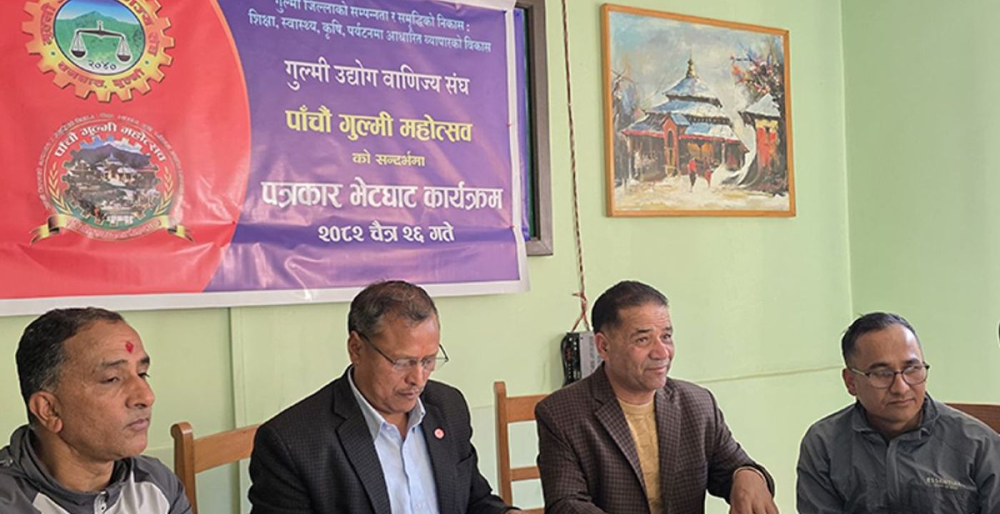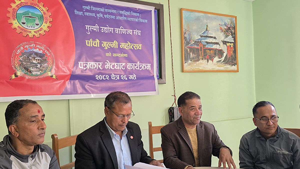 गुल्मी की समग्र आर्थिक विकास और समृद्धि में सहायता के लिए पाँचवाँ गुल्मी महोत्सव आयोजित किया जा रहा है। ‘जिले की समृद्धि और विकास का मार्ग: शिक्षा, स्वास्थ्य, कृषि, पर्यटन आधारित व्यापार का विकास’ इस मुख्य नारे के साथ, गुल्मी उद्योग वाणिज्य संघ सदरमुकाम तम्घास में महोत्सव का आयोजन कर रहा है।