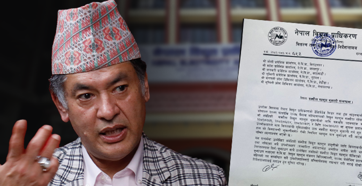 नई सरकार के ऊर्जा मन्त्री विराजभक्त श्रेष्ठ ने मौखिक रूप से बकाया वसूली के निर्देश देने के पश्चात प्राधिकरण ने उद्योगपतियों को पत्र भेजा है, सूत्रों ने बताया।