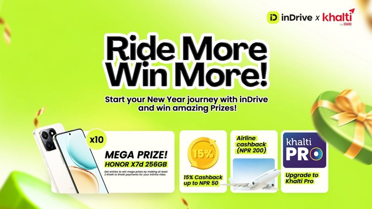 इनड्राइभले नेपाली नयाँ वर्ष २०८३ को अवसरमा ‘राइड मोर, विन मोर’ क्याम्पेन वैशाख १ देखि २१ सम्म सञ्चालन गर्ने घोषणा गरेको छ। यस क्याम्पेनमा प्रत्येक राइडको लागि १ लक्की ड्र टिकट प्रदान गरिनेछ र मेगा गिभअवेमा भाग लिन कम्तीमा २ कारोबार खल्ती एपमार्फत गर्नुपर्नेछ। प्रमुख पुरस्कारमा १० वटा अनर एक्स ७ डी स्मार्टफोनसहित प्रोमो कोडमार्फत क्यासब्याक र एयरलाइन प्रोमो कोड पनि समावेश गरिएको छ।