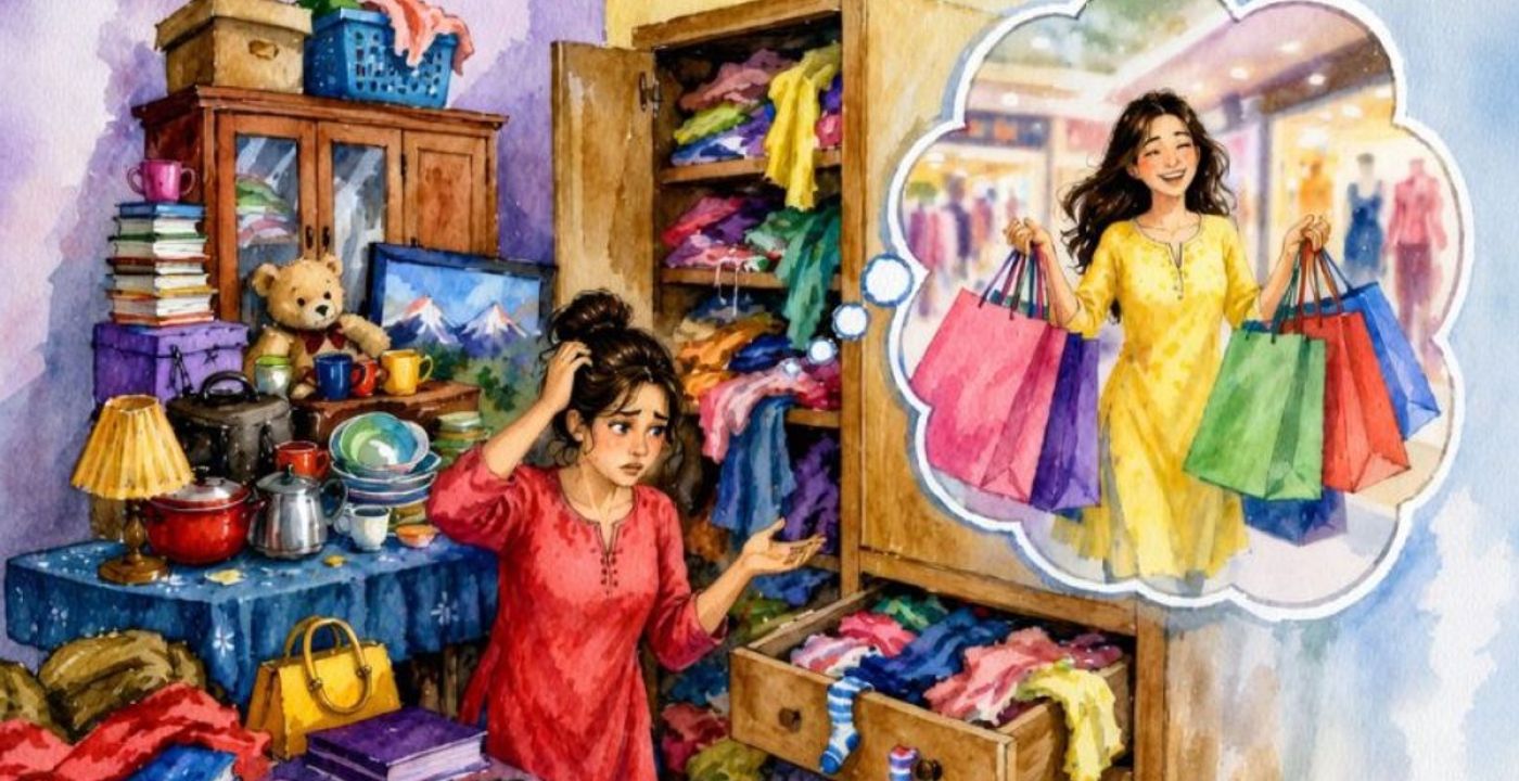 अक्सर हम खरीदारी करते समय वर्तमान की तुलना में ‘भविष्य के खुद’ को ध्यान में रखते हैं। जैसे ‘यह कपड़ा मैं बाद में पार्टी में पहनूंगा’ या ‘यह सामान मैं बाद में काम में लाऊंगा’ वाली सोच से हम सामानों के ढेर में फंस जाते हैं।