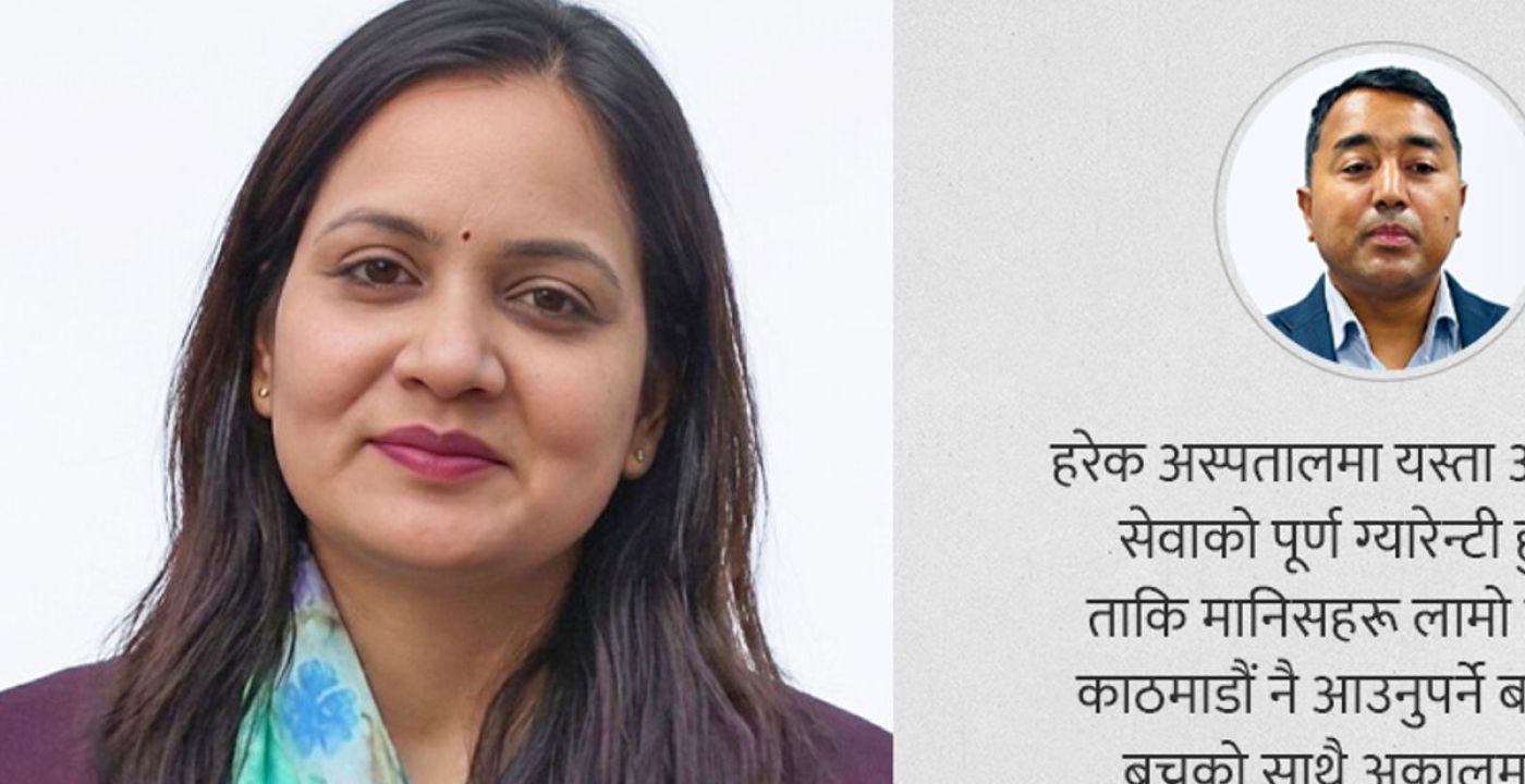 तीन दशक से अधिक निराशा के बाद नेपाल को एक ऐसी सरकार मिली है जिस पर आशा की जा सकती है। सरकार विभिन्न प्राथमिकताएं तय कर सकती है, लेकिन यदि हम जनस्वास्थ्य और स्वास्थ्य प्रणाली को सबसे बड़ी प्राथमिकता नहीं बनाते तो देश का विकास संभव नहीं होगा, ऐसा मेरा विश्वास है।