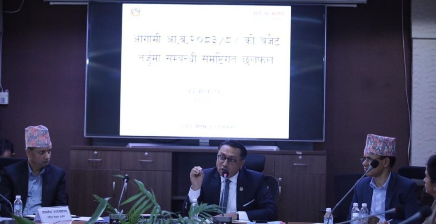 अर्थमंत्री डॉ. स्वर्णिम वाग्ले ने आगामी आर्थिक वर्ष २०८३/८४ के बजट तैयारियों को लेकर संबंधित विषयगत मंत्रालयों के मंत्रियों और सचिवों के साथ विस्तारपूर्वक चर्चा की है। अर्थ मंत्रालय में आयोजित इस बैठक में राष्ट्रीय योजना आयोग के उपाध्यक्ष, सदस्य और प्रधानमंत्री के सलाहकार सुदीप ढकाल भी उपस्थित थे। मंत्री वाग्ले ने बजट निर्माण में सुशासन, आर्थिक विकास, निजी निवेश, अवसंरचना विकास और आर्थिक रूप से कमजोर वर्ग के उत्थान को प्राथमिकता देने का आग्रह किया है। ७ वैशाख, काठमाडौं।