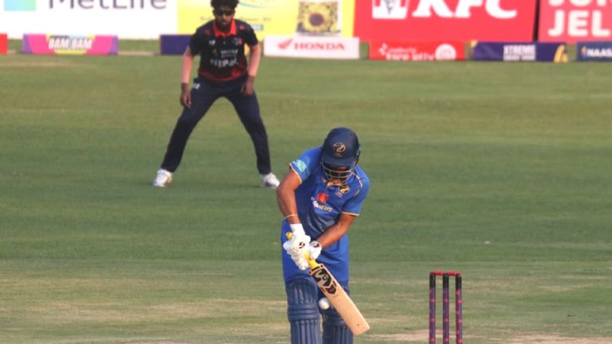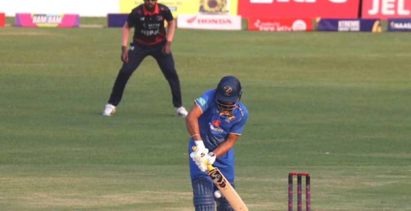 कप्तान मोहम्मद वासिम शून्य पर आउट हुए, अदीब उसमानी ने 30 रन बनाए, अलीशान शराफू 1 रन, हरप्रीत सिंह भाटिया 1 रन, शोएब खान 0, निलंश केसवानी 0 और तनभीर 0 रन पर आउट हुए। गेंदबाजी में नेपाल के सन्दीप लामिछाने को 3 विकेट मिले, हेमन्त धामी ने 2 विकेट लिए जबकि नंदन यादव और शाहव आलम को एक-एक विकेट मिला। पहले मैच में नेपाल को यूएई के खिलाफ 6 विकेट से हार का सामना करना पड़ा था।