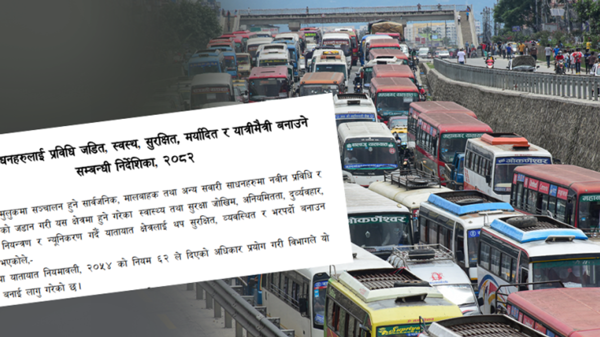 सरकार ने सार्वजनिक परिवहन में अनिवार्य रूप से जीपीएस और दो या उससे अधिक सीसीटीवी कैमरे लगाने के लिए नई निर्देशिका तैयार की है। सार्वजनिक वाहनों में ऑनलाइन टिकट खरीद और भुगतान के लिए मोबाइल एप एवं डिजिटल प्रणाली को अनिवार्य किया जाएगा। अग्निशमन तंत्र, प्राथमिक चिकित्सा किट और आपातकालीन सहायता बटन लगाने के निर्देश भी जारी किए जाने की तैयारी है। ८ वैशाख, काठमाडौं। अब से सार्वजनिक परिवहन में ‘जीपीएस’ (किसी भी वस्तु या व्यक्ति की स्थिति का पता लगाने वाला उपकरण) अनिवार्य रूप से स्थापित करना होगा। भौतिक पूर्वाधार तथा यातायात मंत्रालय ने परिवहन साधनों को तकनीकी सुसज्जित, स्वस्थ, सुरक्षित, मर्यादित और यात्री-मित्र बनाए रखने के लिए निर्देशिका २०८२ का मसौदा तैयार किया है। इसी निर्देशिका के तहत सरकार जीपीएस को सार्वजनिक वाहन में अनिवार्य करने जा रही है। इसके लिए यातायात व्यवस्था विभाग तकनीकी सहयोग प्रदान करने का प्रस्ताव दे चुका है।