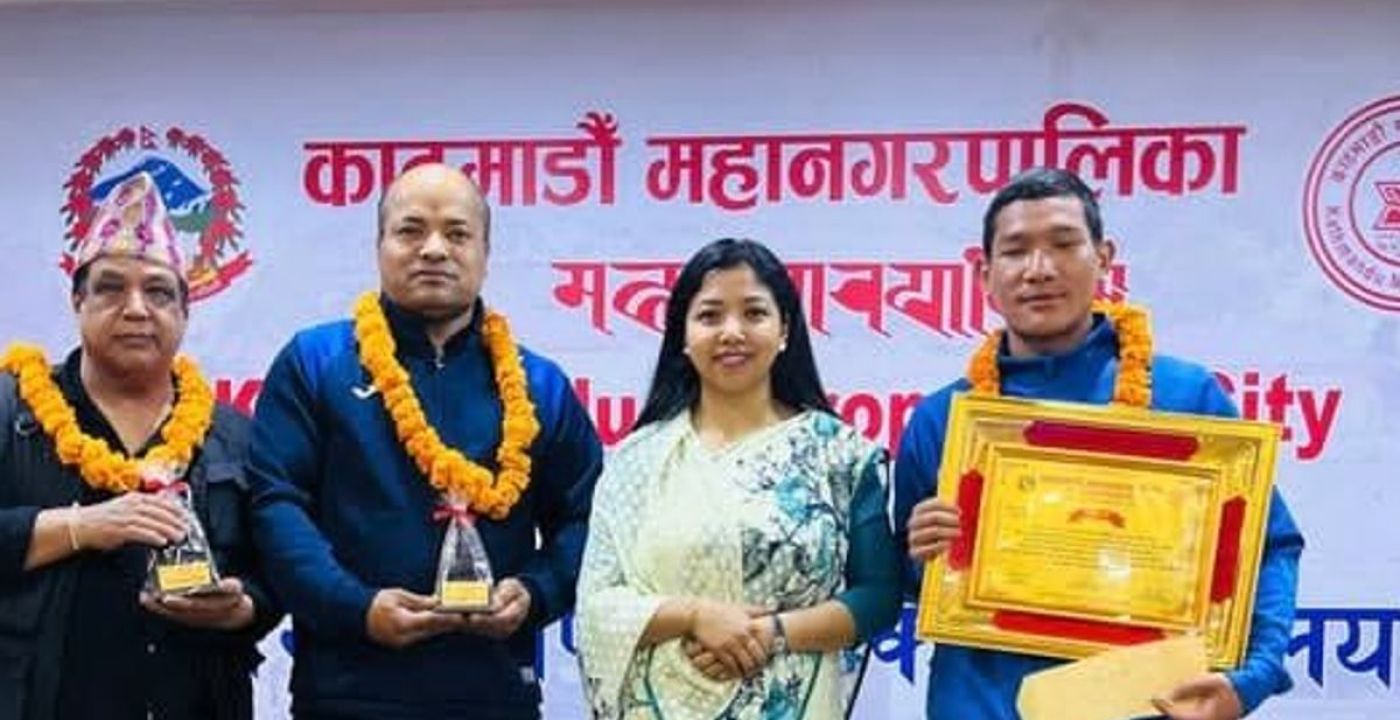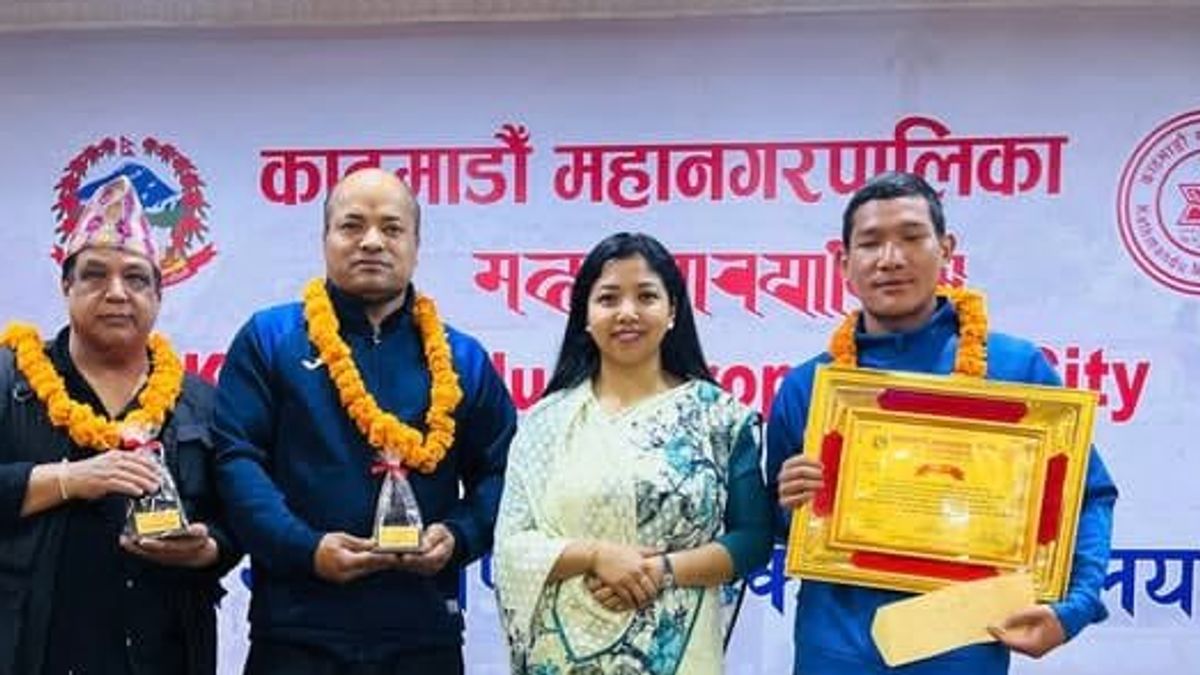 काठमांडू महानगरपालिका ने विश्व बक्सिंग चैंपियनशिप में कांस्य पदक जीतने वाले चन्द्रबहादुर थापा मगर को 1 लाख रुपये नकद सहित सम्मानित किया है। चन्द्र ने नवंबर में यूएई के दुबई में आयोजित पुरुष 54 किलोग्राम भार वर्ग में कांस्य पदक प्राप्त किया था। प्रशिक्षक दीपक महर्जन को भी सम्मानित किया गया और इस अवसर पर कार्यवाहक मेयर सुनिता डंगोल ने समारोह में उपस्थित होकर उन्हें सम्मानित किया। 9 वैशाख, काठमांडू। काठमांडू महानगरपालिका ने विश्व बक्सिंग चैंपियनशिप में ऐतिहासिक कांस्य पदक जीतने वाले चन्द्रबहादुर थापा मगर को बुधवार को नकद पुरस्कार सहित सम्मानित किया। चन्द्र ने गत नवंबर में यूएई के दुबई में हुए इस चैंपियनशिप के पुरुष 54 किग्रा भार वर्ग में कांस्य पदक हासिल किया था। काठमांडू महानगरपालिकाने उन्हें 1 लाख रुपये नकद और सम्मान पत्र से पुरस्कृत किया। चन्द्र ने शानदार प्रदर्शन करते हुए सेमीफाइनल स्थान हासिल किया था। नेपाली बॉक्सिंग इतिहास में विश्व चैंपियनशिप में कांस्य पदक जीतना यह पहली बार हुआ है। इसी अवसर पर प्रशिक्षक दीपक महर्जन को भी सम्मानित किया गया। उन्हें काठमांडू महानगरपालिका की कार्यवाहक मेयर सुनिता डंगोल, महानगर प्रवक्ता नवीन मानन्धर सहित अन्य ने एक समारोह के दौरान सम्मानित किया।