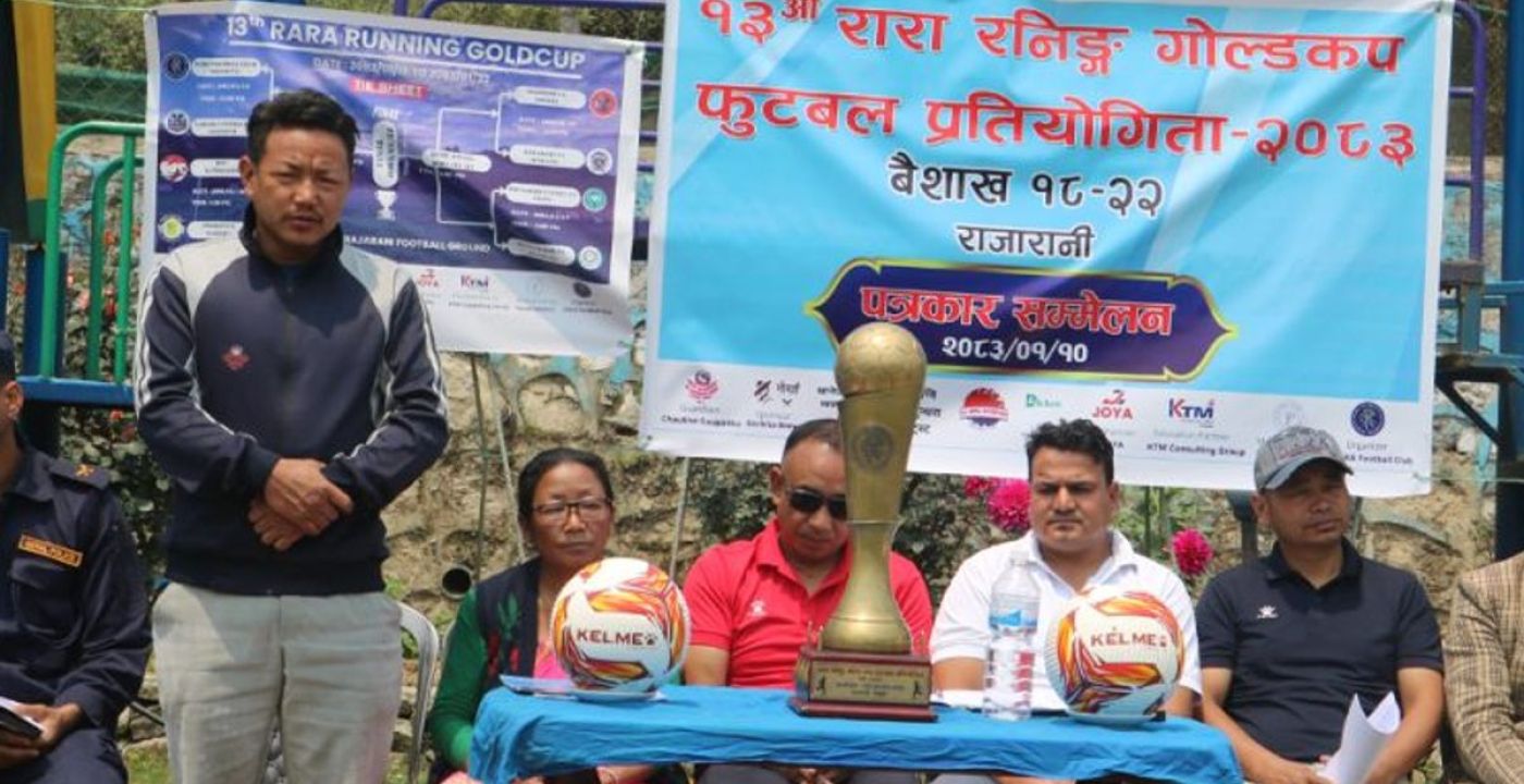 रारा फुटबल क्लब ने बुधवार राजारानी स्थित रानी ताल परिसर में आयोजित एक प्रेस कॉन्फ्रेंस में जानकारी दी कि १३वाँ रारा रनिंग गोल्डकप फुटबॉल प्रतियोगिता वैशाख १८ से २२ तक धनकुटा के चौबिसे गाउँपालिका के राजारानी में आयोजित की जाएगी। प्रतियोगिता में आठ टीमें भाग लेंगी और विजेता को सात लाख रुपए जबकि उपविजेता को तीन लाख रुपए पुरस्कार दिया जाएगा, आयोजकों ने बताया। कुल खर्च ३६ लाख ३२ हजार ५०० रुपए अनुमानित है, जिसमें चौबिसे गाउँपालिकाने १४ लाख रुपए का सहयोग दिया है।