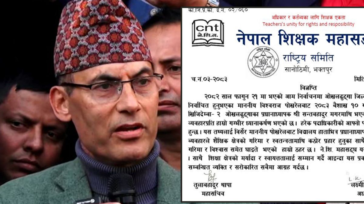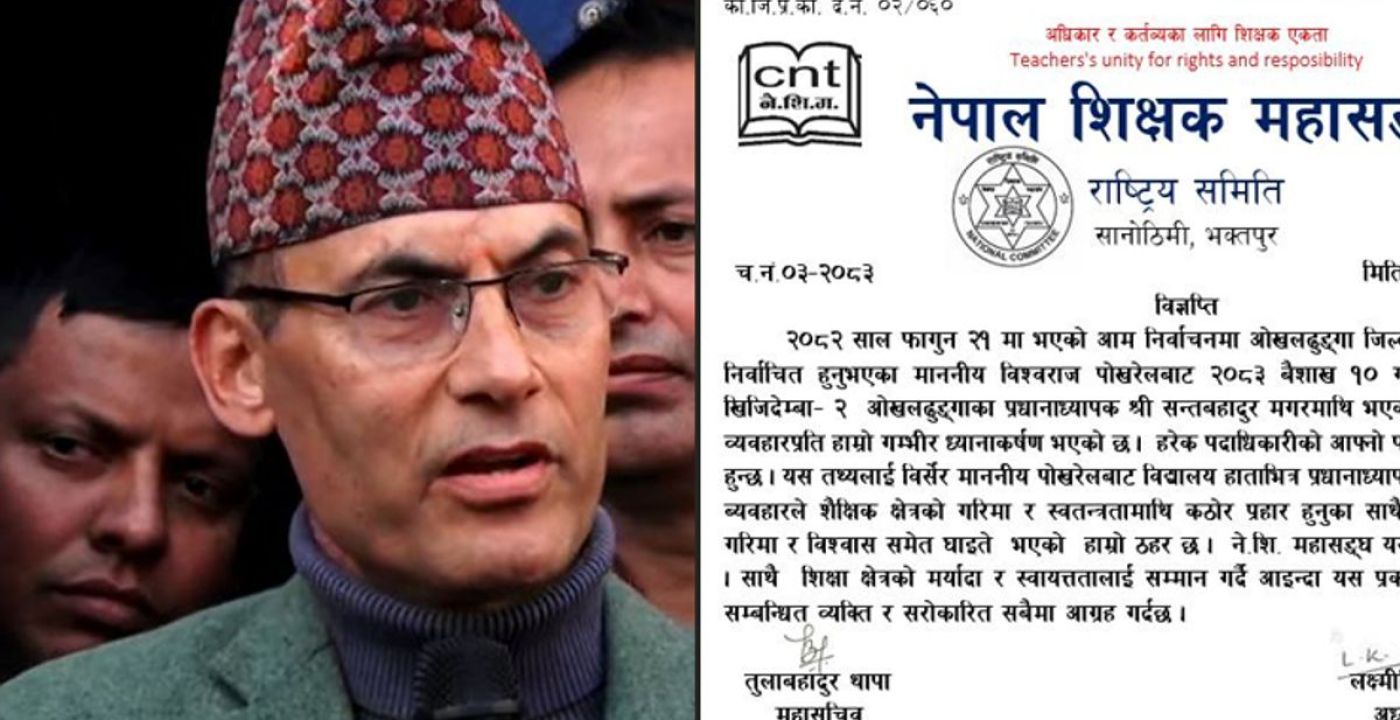 नेपाल शिक्षक महासंघ ने रास्वपा सांसद पोखरेल द्वारा प्रधानाध्यापक के प्रति व्यवहार की कड़ी निंदा की