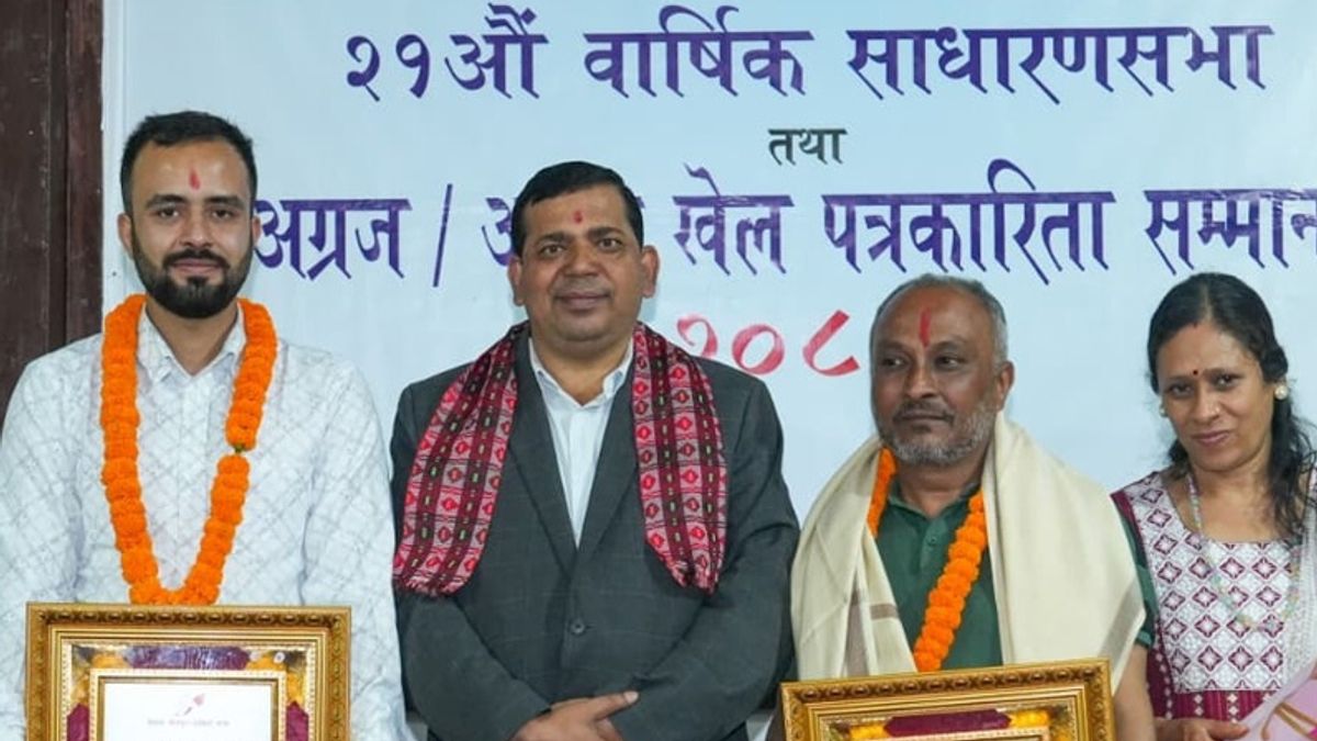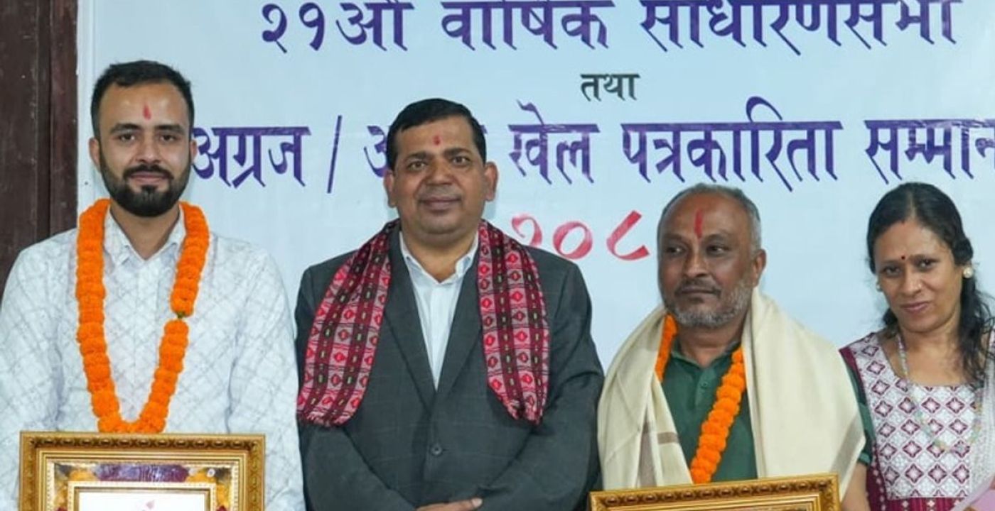 नेपाल खेलकुद पत्रकार मञ्च ने वरिष्ठ खेलकुद पत्रकार रोशन सिंह राउत और युवा पत्रकार नायक पौडेल को सम्मानित किया है। राष्ट्रीय खेलकुद परिषद के सदस्य सचिव राम चरित्र मेहताले मञ्च के २१वें साधारण सभा में दोनों पत्रकारों को सम्मानपत्र प्रदान किए। १३ वैशाख, काठमाडौँ में आयोजित इस कार्यक्रम में रोशन को ‘अग्रज खेल पत्रकारिता सम्मान २०७९’ और नायक को ‘सुमन भोम्जन स्मृति युवा पत्रकारिता पुरस्कार-२०७९’ से सम्मानित किया गया।