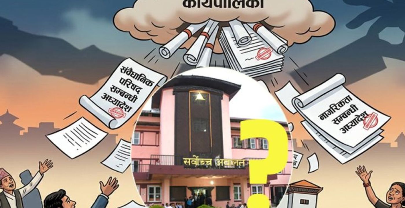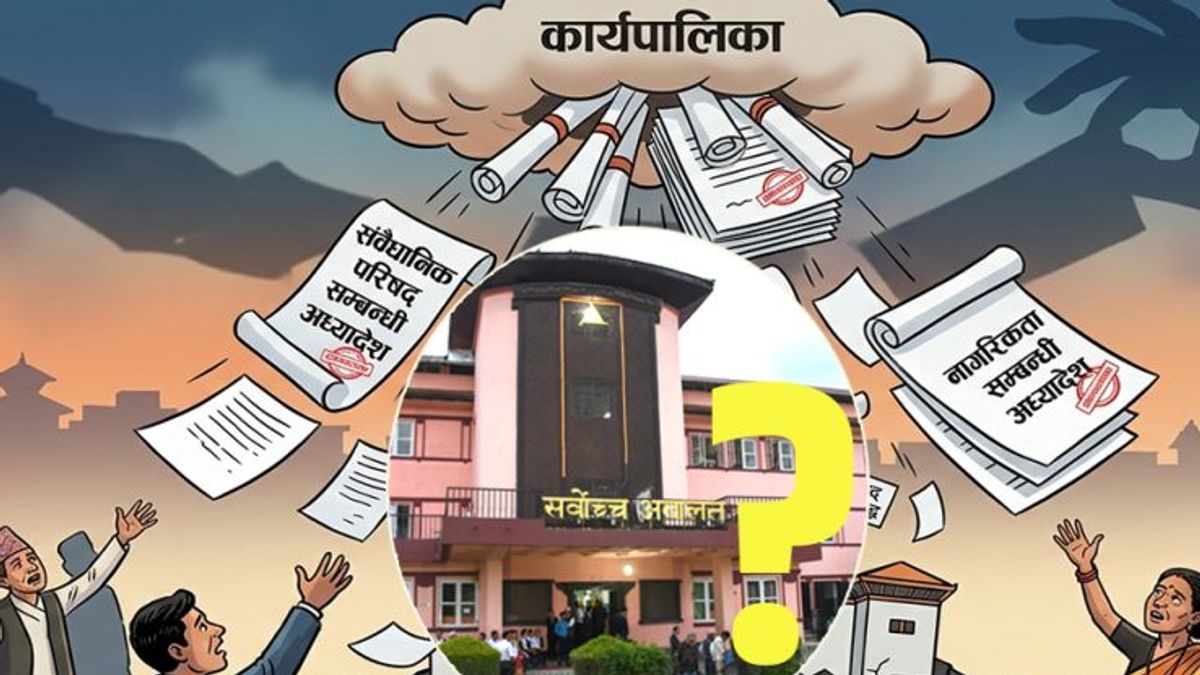५२ संवैधानिक पदाधिकारियों के विवाद और एमाले विभाजन के समय जारी राजनीतिक दल संबंधी अध्यादेश जैसे मामलों में लगातार मुकदमे चलने के बावजूद सर्वोच्च अदालत अध्यादेश से जुड़ी स्पष्ट और समाधानमुखी व्याख्या करने से बचती है।